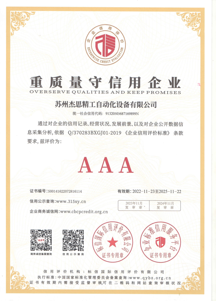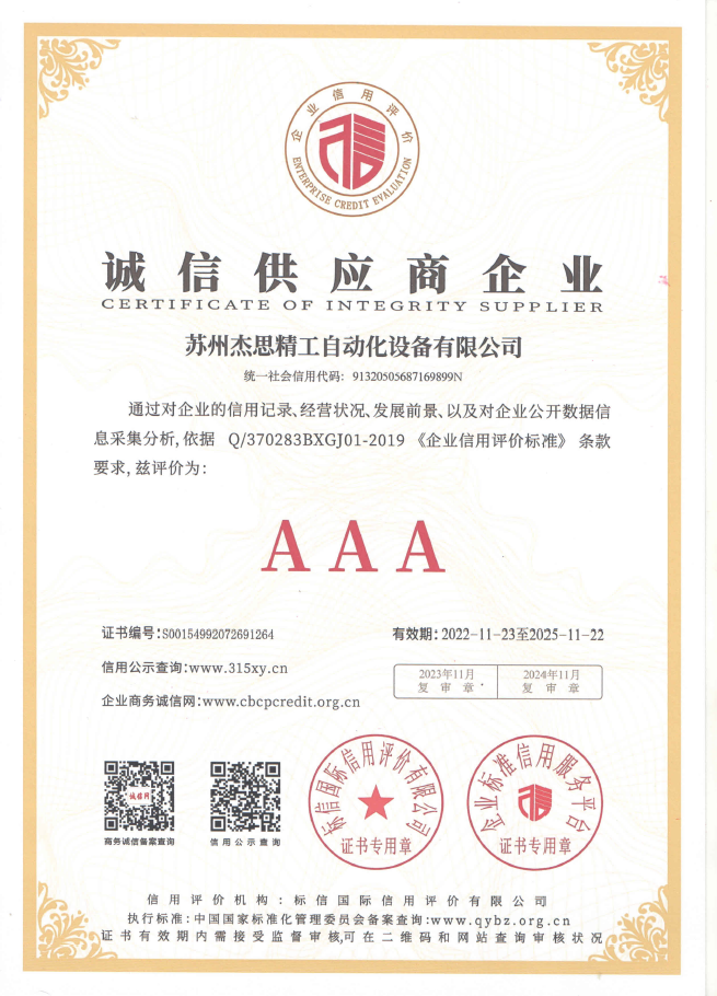 蘇州杰思精工自動(dòng)化設(shè)備有限公司本著“高質(zhì)量,優(yōu)服務(wù),求發(fā)展”的精神,